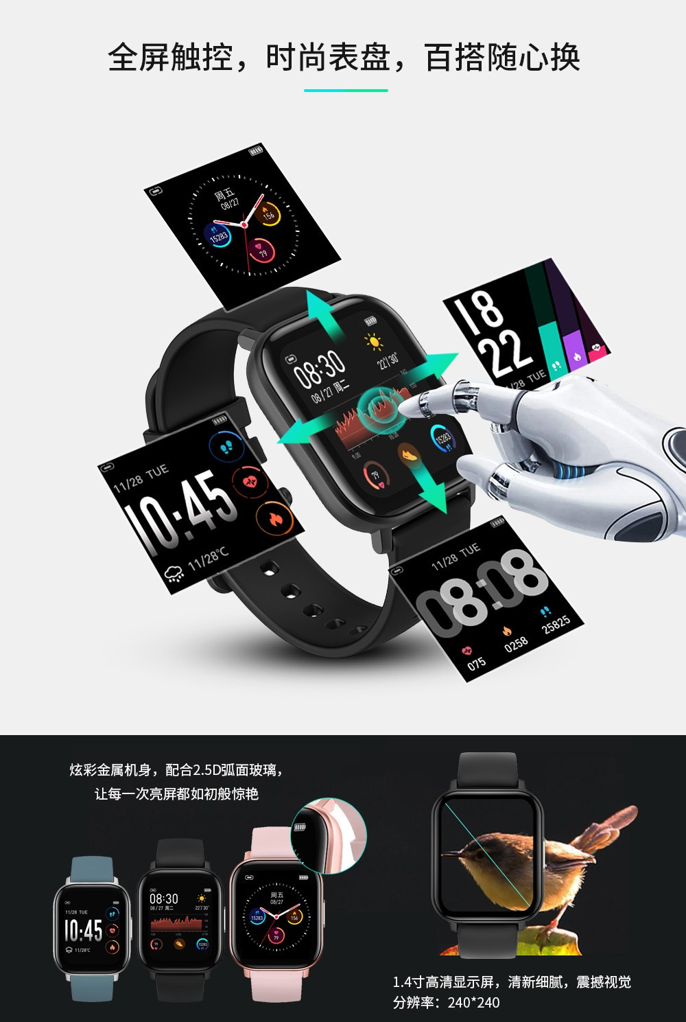 產(chǎn)品類(lèi)型:智能穿戴? ? ? ? ? ? ? ? ? ? ? ? ? |? ?信息推送:支持 屏幕尺寸:1.4inch? ? ? ? ? ? ? ? ? ? ? ? ? ? |? ?來(lái)電提醒:支持 分辨率:240*240? ? ? ? ? ? ? ? ? ? ? ? ? ? ?|? ?防水:IP68 操作平臺(tái):NRF52832? ? ? ? ? ? ? ? ? ? ? ?|? ?震動(dòng)模式:支持 材質(zhì):鋅合金? ? ? ? ? ? ? ? ? ? ? ? ? ? ? ? ? ? |? ?側(cè)鍵:支持 內(nèi)存:64KB+512KB? ? ? ? ? ? ? ? ? ? ? ? ?|? ?充電器:磁鐵彈簧針 存儲(chǔ):64M bit? ? ? ? ? ? ? ? ? ? ? ? ? ? ? ? ? |? ?GPS:不支持 功能介紹? ? ? ? ? ? ? ? ? ? ? ? ? ? ? ? ? ? ? ? ? ?|? ? APP:支持專(zhuān)門(mén)APP 藍(lán)牙:藍(lán)牙 4.0, 支持安卓和iOS系統(tǒng)? ?|? ?語(yǔ)言:多語(yǔ)言 多運(yùn)動(dòng)模式:支持? ? ? ? ? ? ? ? ? ? ? ? ? ? ? |? ?手表語(yǔ)言:APP語(yǔ)言 心率測(cè)試:3300光學(xué)心率傳感器? ? ? ? |? ? 說(shuō)明書(shū)語(yǔ)言:手表語(yǔ)言 體溫測(cè)試:支持? ? ? ? ? ? ? ? ? ? ? ? ? ? ? ? ?|? ? 結(jié)構(gòu)特點(diǎn) 呼吸功能:支持? ? ? ? ? ? ? ? ? ? ? ? ? ? ? ? ?|? ? 尺寸:43.25*36.25*9.5mm 節(jié)拍器:支持? ? ? ? ? ? ? ? ? ? ? ? ? ? ? ? ? ? |? ? 電池:180MA 計(jì)步器:支持? ? ? ? ? ? ? ? ? ? ? ? ? ? ? ? ? ? |? ? 顏色:玫瑰金,黑色,銀色 睡眠監(jiān)測(cè):支持? ? ? ? ? ? ? ? ? ? ? ? ? ? ? ? ?|? ?包裝尺寸:102*83*68MM G-傳感器:支持